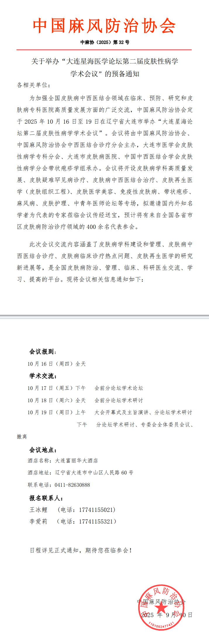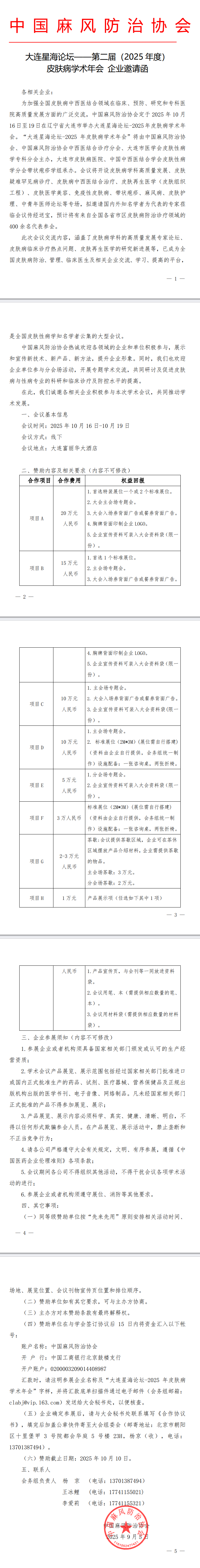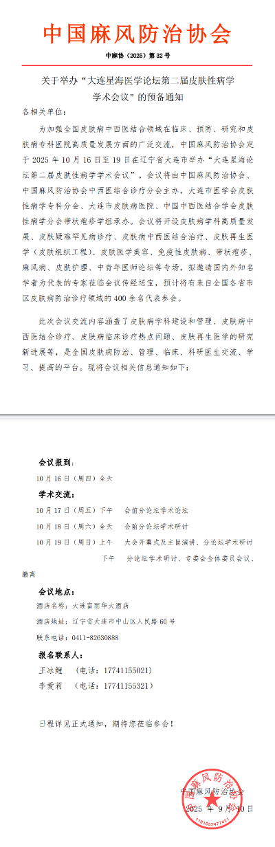 "大连星海论坛-2025 年皮肤病学术年会"会议通知及招商函