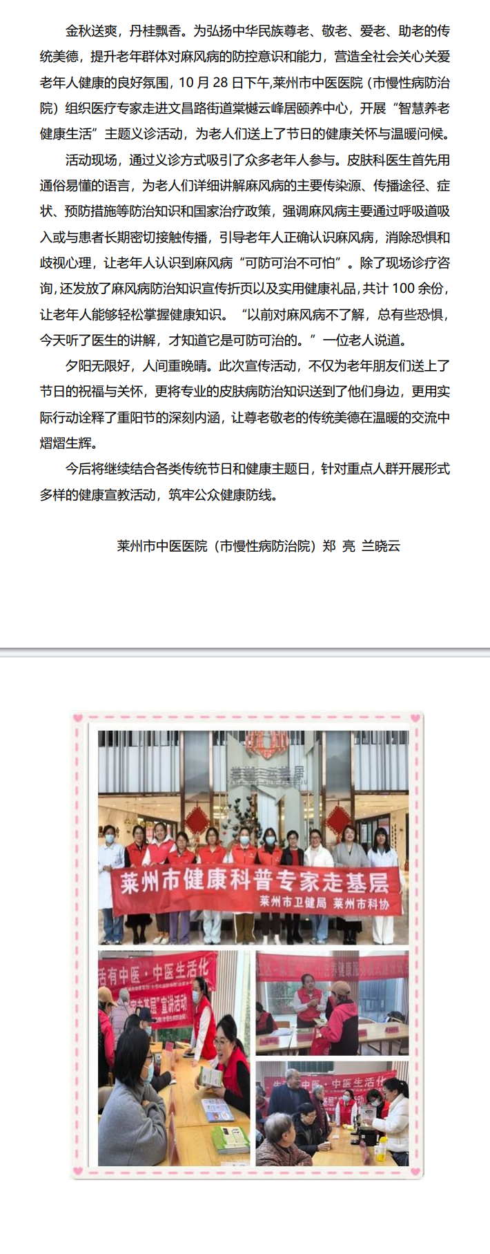 【重阳送健康,关爱暖夕阳】莱州市重阳节开展麻风防治知识宣传活动