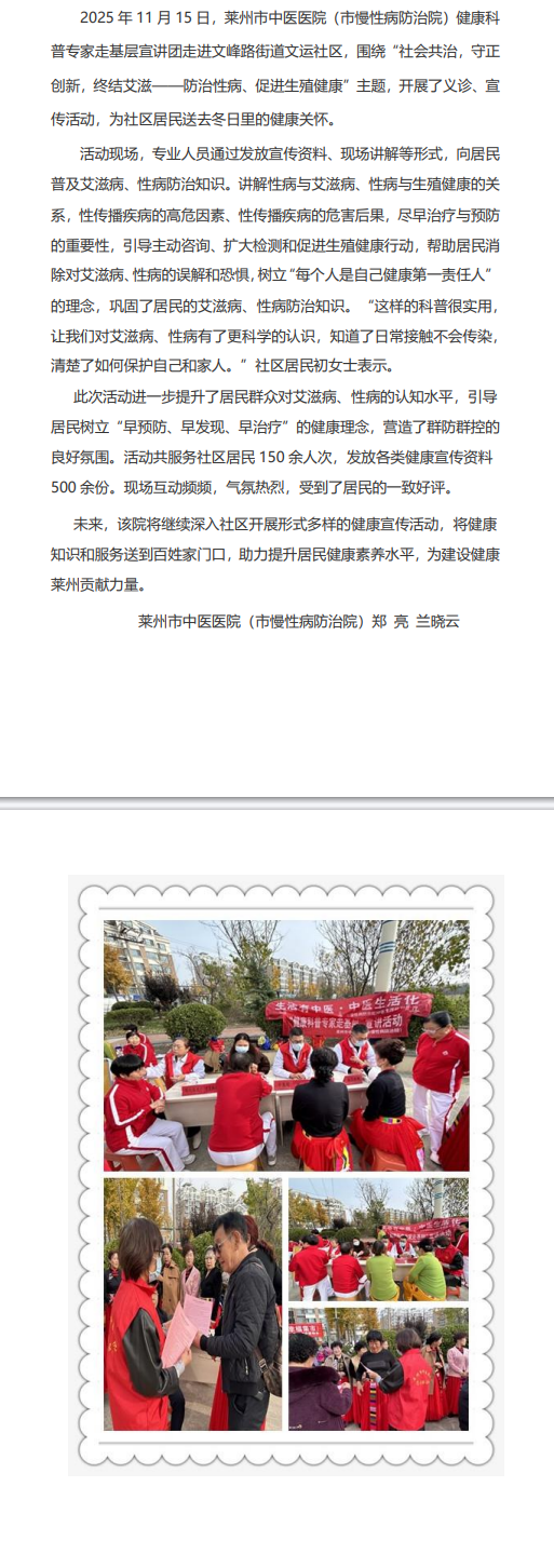开展性病艾滋病健康宣讲义诊进社区活动